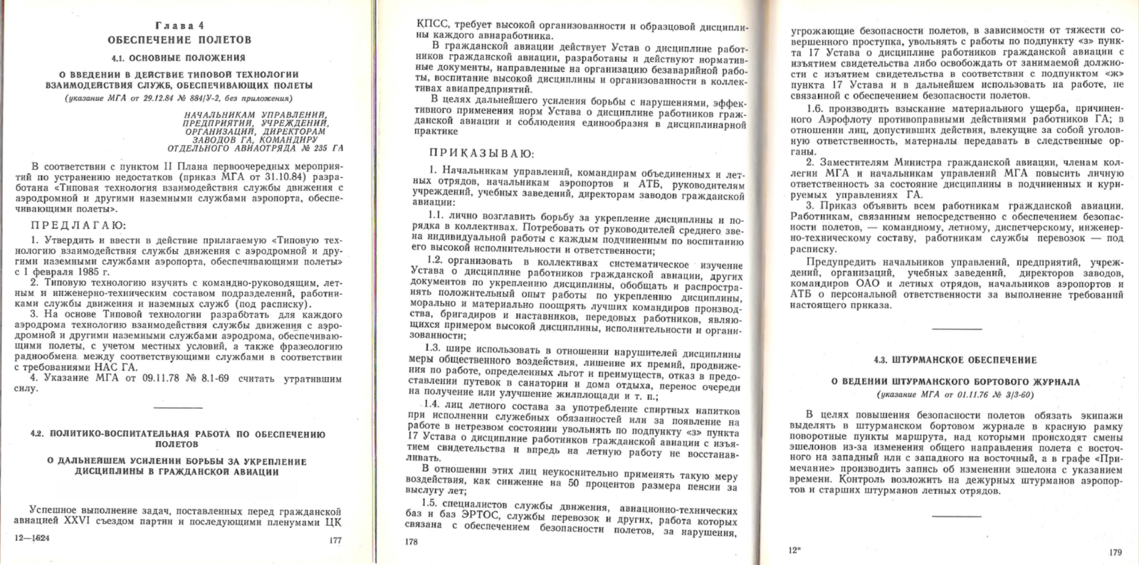 | Вместе с тем проводилась политико-воспитательная работа по обеспечению полетов в гражданской авиации СССР. | О дальнейшем усилении борьбы за укрепление дисциплины в гражданской авиации. | |