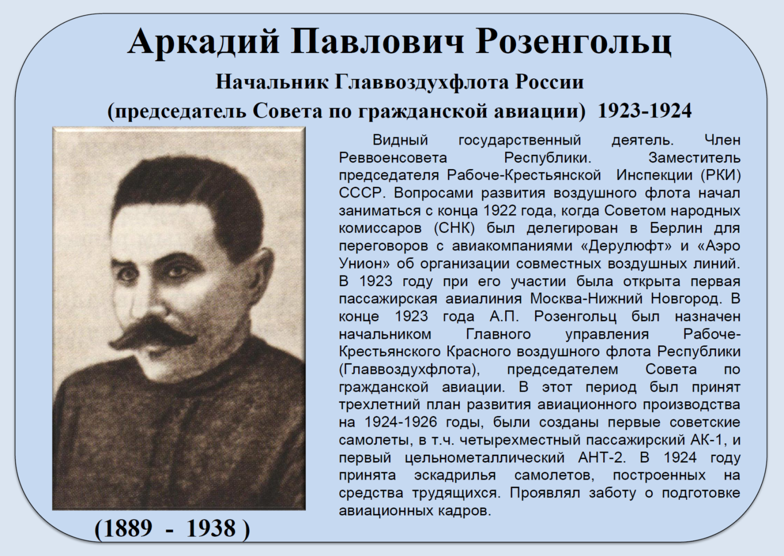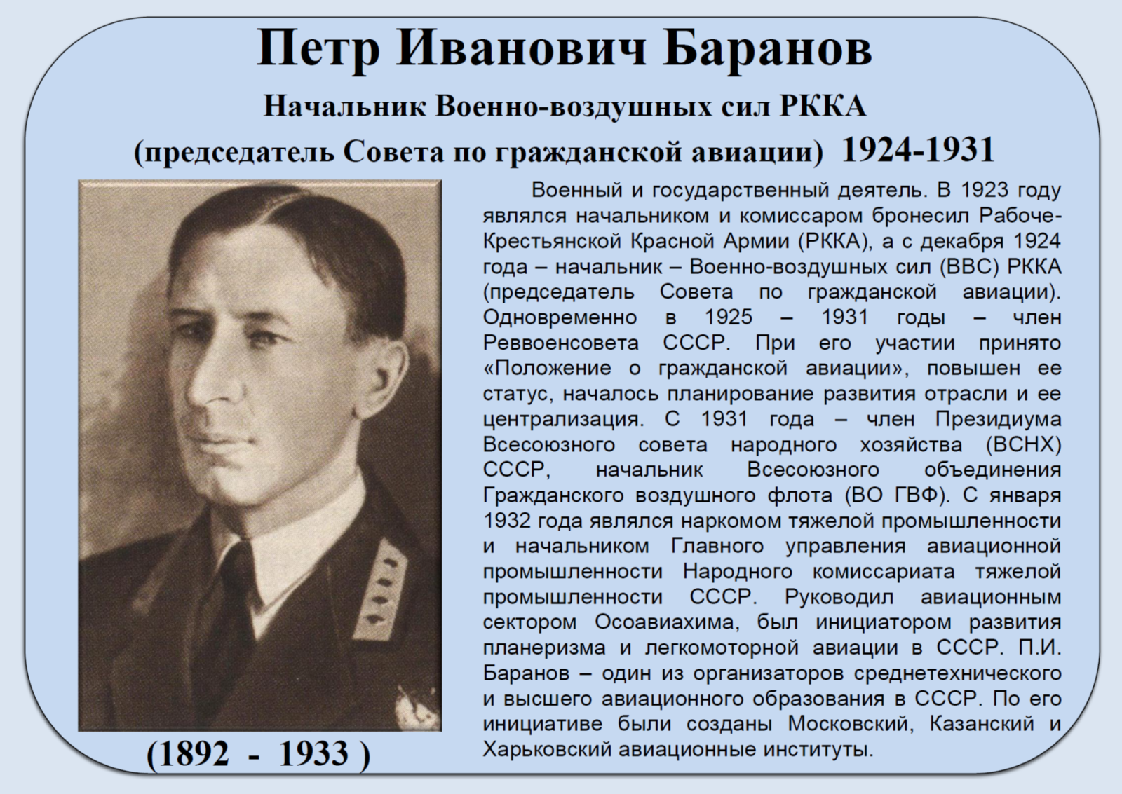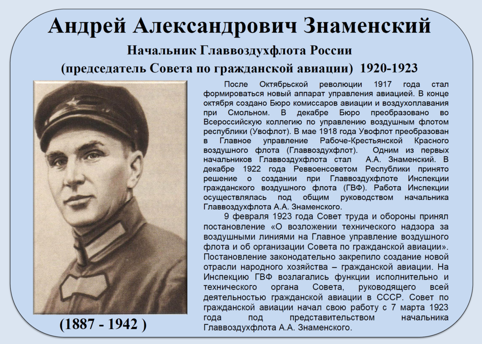 Начальники Главвоздухфлота России и Военно-воздушных сил РККА - председатели Совета по гражданской авиации (1923 - 1932)